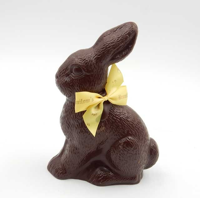 Comes in cello bag and signature Bomilow Bunny Box. 9oz dark chocolate.