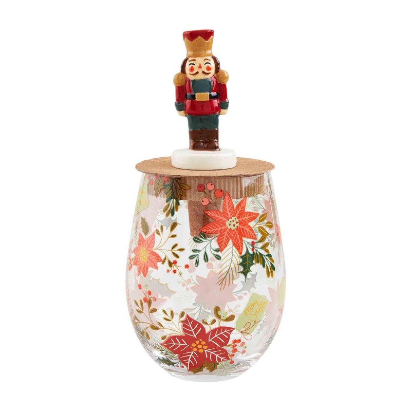 16oz patterned stemless wine glass. Comes with hand-painted ceramic bottle stopper