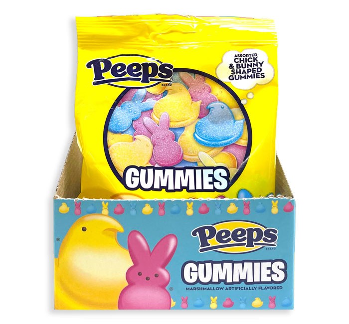 Peeps Gummies. This is a 3.75 ounce bag filled with Gummie Marshmallow Peeps. Delicious little gummi Peeps candies. Perfect to eat or to decorate your Easter cupcakes with