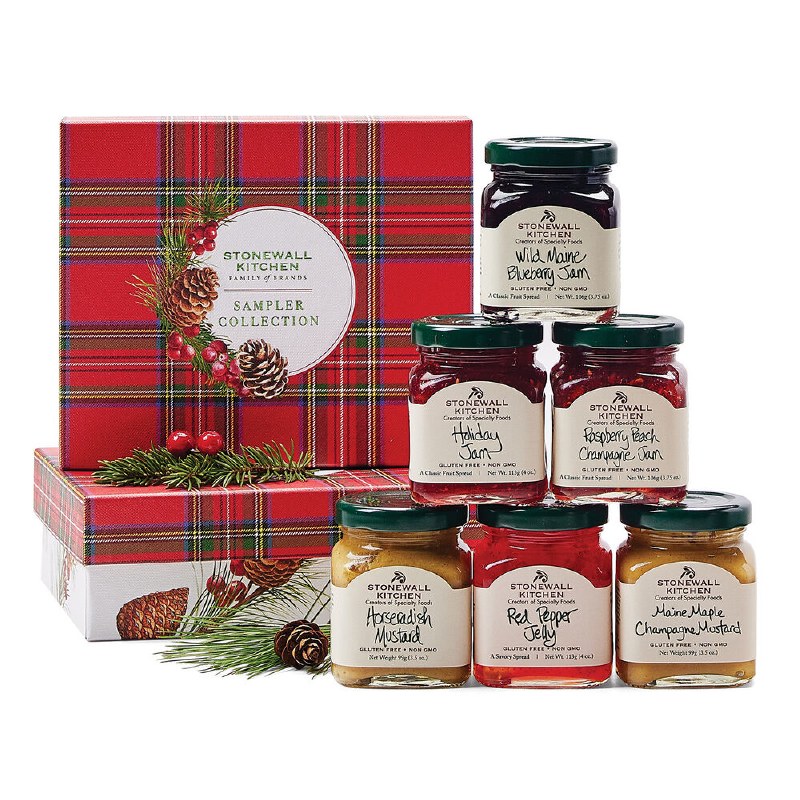 These are a few of our favorite things! Perfect for pleasing all sorts of palates, our sampler contains mini-sized versions of six best-sellers, including three sweet jams, two zesty mustards and a savory spread. Elegantly packaged in a red-and-white box featuring a festive tartan and pine cone design, this ready-to-give gift recalls the cozy comforts of the season.
